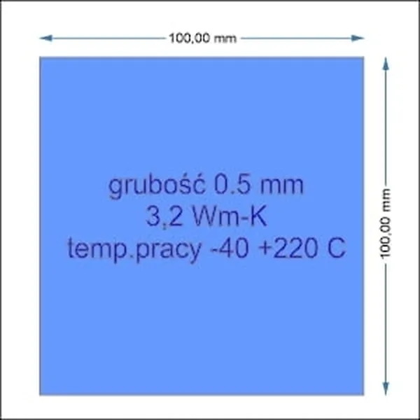 Silikonowa taśma termoprzewodząca 100x100mm x0,5mm zapewnia doskonałe odprowadzanie ciepła. Wysoka elastyczność, przewodność 3,2 W/mK, łatwa aplikacja.